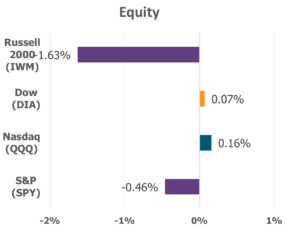 Sector performance painted a varied picture, as seven of the eleven sectors finished lower. Technology and Consumer Discretionary led with gains of 3% and 2.8%. Real Estate and Materials lagged the most with -3.9% and -3.7% losses, in part due to housing affordability challenges and potential supply shifts in rare earth minerals from China.