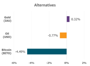 Sector performance painted a varied picture, as seven of the eleven sectors finished lower. Technology and Consumer Discretionary led with gains of 3% and 2.8%. Real Estate and Materials lagged the most with -3.9% and -3.7% losses, in part due to housing affordability challenges and potential supply shifts in rare earth minerals from China.